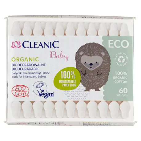 Aktualnie przeglądasz opis towaru „Cleanic Baby Organic Patyczki dla niemowląt i dzieci 60 sztuk.”