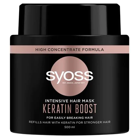 Opis produktu: Syoss Keratin Boost Intensywnie wzmacniająca maska przeciw łamaniu się włosów z keratyną 500 ml