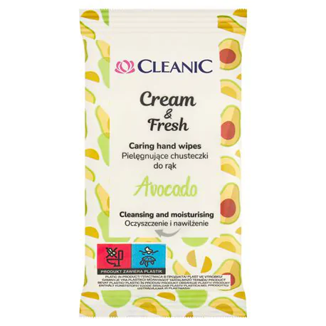 Chusteczki odświeżające do rąk Cleanic Cream & Fresh Avocado zawierają unikalną formułę wzbogaconą o naturalny ekstrakt z awokado. Awokado to bogate źródło witamin A, E oraz kwasów tłuszczowych, które od lat są cenione w kosmetyce za swoje właściwości odżywcze i regenerujące. Dzięki temu chusteczki nie tylko skutecznie oczyszczają skórę, ale również ją pielęgnują, pozostawiając dłonie miękkie, gładkie i przyjemne w dotyku.