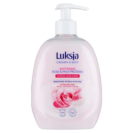 Aktualnie przeglądasz opis towaru „Luksja Creamy & Soft Kremowe mydło w płynie wygładzające róża i proteiny mleka 500 ml.”