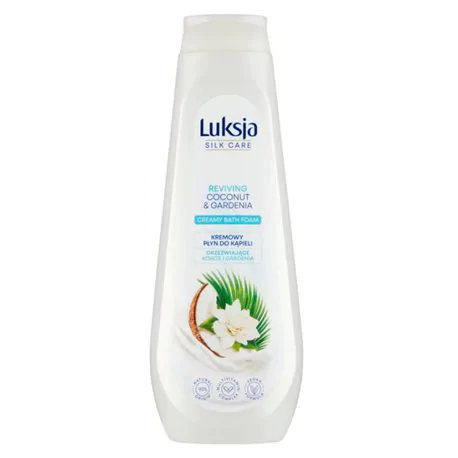 Opis produktu: Luksja Silk Care Kremowy płyn do kąpieli Orzeźwiające Kokos i Gardenia 900 ml