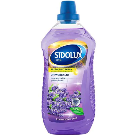 Zamów Sidolux płyn uniwersalny lawendowy 1L i przekonaj się, jak łatwo połączyć skuteczne sprzątanie z kojącym, lawendowym aromatem w całym domu.