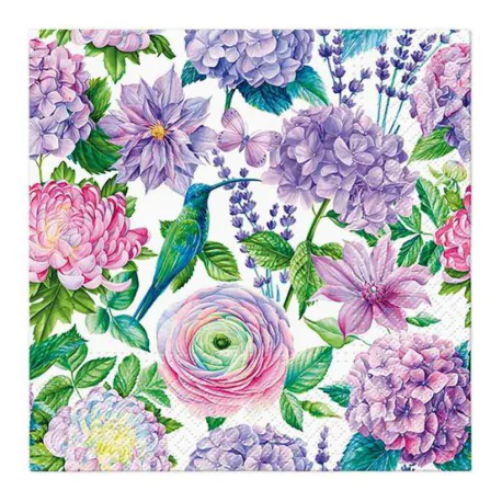 Serwetki ozdobione są motywem różnorodnych kwiatów w pastelowych odcieniach – miękkim różu, jasnej żółci, delikatnym błękicie i subtelnej zieleni liści. Taki wzór nadaje im uniwersalny, przyjemny charakter i sprawia, że doskonale komponują się z różnymi aranżacjami stołów – od klasycznych po nowoczesne. Kwiatowy motyw w pastelowych barwach wprowadza do wnętrza spokój, radość i lekkość.