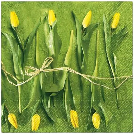 Aktualnie przeglądasz opis towaru „Paw serwetki papierowe z motywem świeżych żółtych tulipanów 20 sztuk 33x33 cm.”