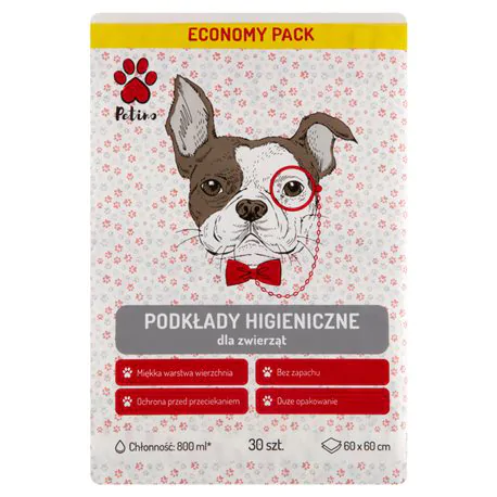 Cleanic Petino Podkład Higieniczny dla Zwierząt 30 sztuk to niezbędne wsparcie dla każdego właściciela pupila. Dzięki połączeniu miękkości, chłonności i ochrony, podkłady zapewniają komfort zwierzęciu i czystość otoczenia. Niezastąpione w nauce czystości, opiece nad chorym zwierzęciem, podczas podróży lub po zabiegach weterynaryjnych – stanowią praktyczny i niezawodny element wyposażenia każdego domu, w którym mieszka pies, kot lub inne małe zwierzę.