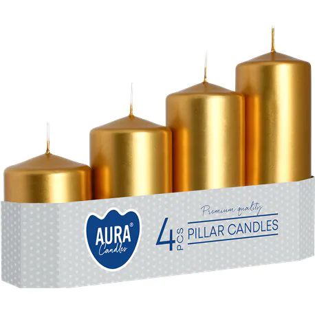 Aktualnie przeglądasz opis towaru „Bispol świece walce stopniowane 50/4 4 szt złoty metalik.”