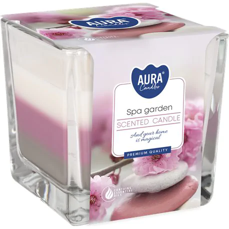 Aktualnie przeglądasz opis towaru „Bispol świeca zapachowa trójkolorowa w szkle SNK80-254 Ogród Spa.”