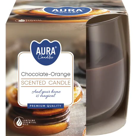 Aktualnie przeglądasz opis towaru „Bispol świeca zapachowa w szkle sn71-340 Czekolada - Pomarańcza.”