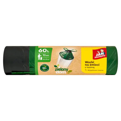 Aktualnie przeglądasz opis towaru „Jan Niezbędny Worki LD Ekologiczne Zielony Dom z taśmą 60l 10szt.”