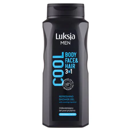 Odświeżający żel pod prysznic 3w1 Luksja Men Cool przeznaczony do ciała, twarzy i włosów usuwa zanieczyszczenia, jednocześnie pielęgnując. Wzbogacony w chłodzący mentol, pozostawia uczucie orzeźwienia i pobudzenia oraz świeżości trwającej aż do 8 godzin.